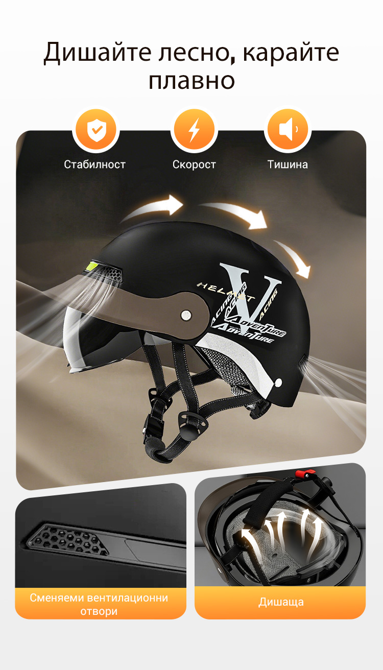 Дишаща, лека и устойчива на удари мотоциклетна каска