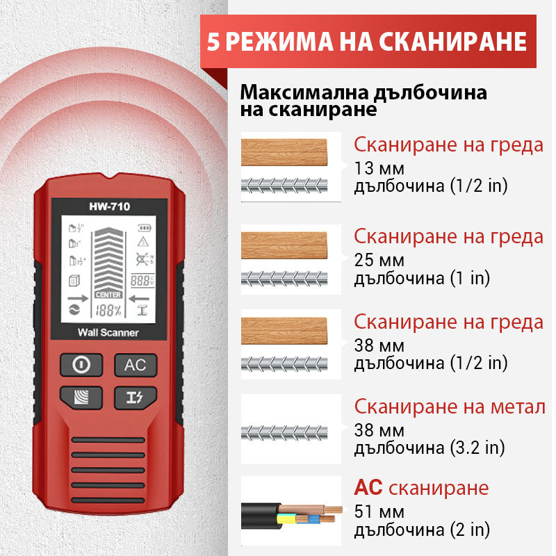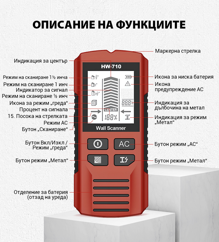 🔥💯Многофункционален ръчен детектор за метал и стена