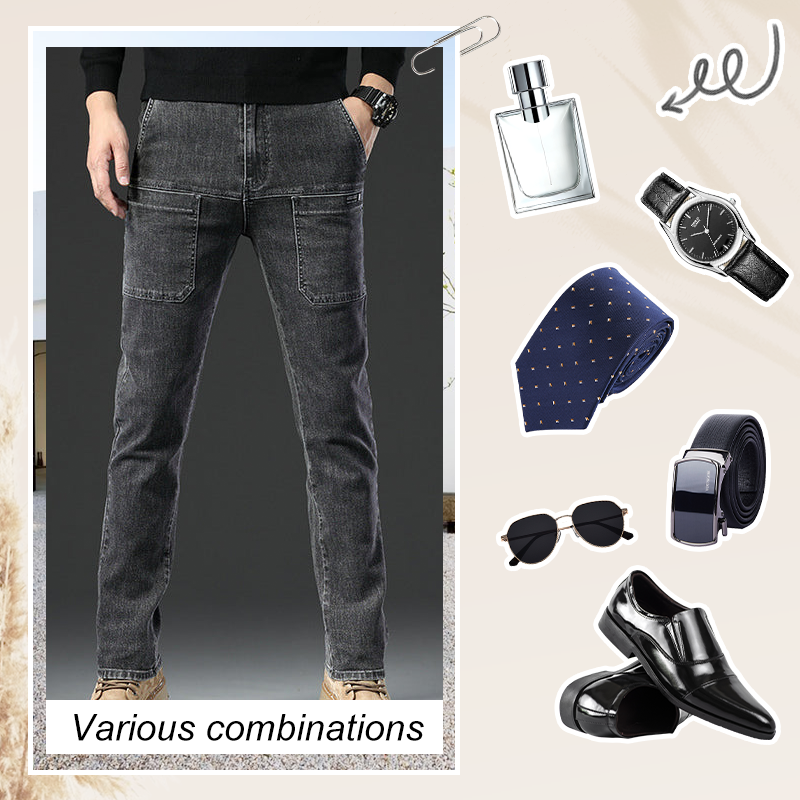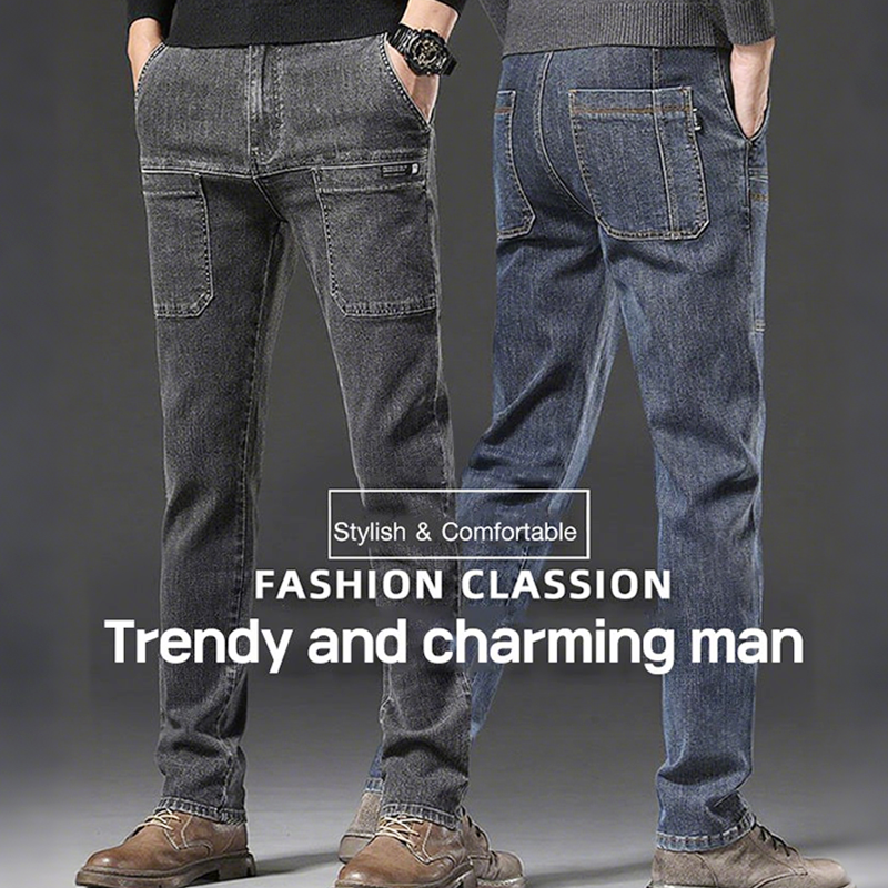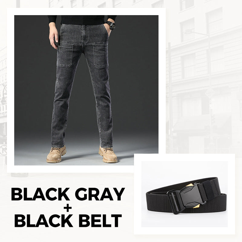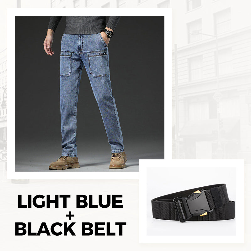 Мъжки дънки с 6 джоба и тясна кройка+Колан