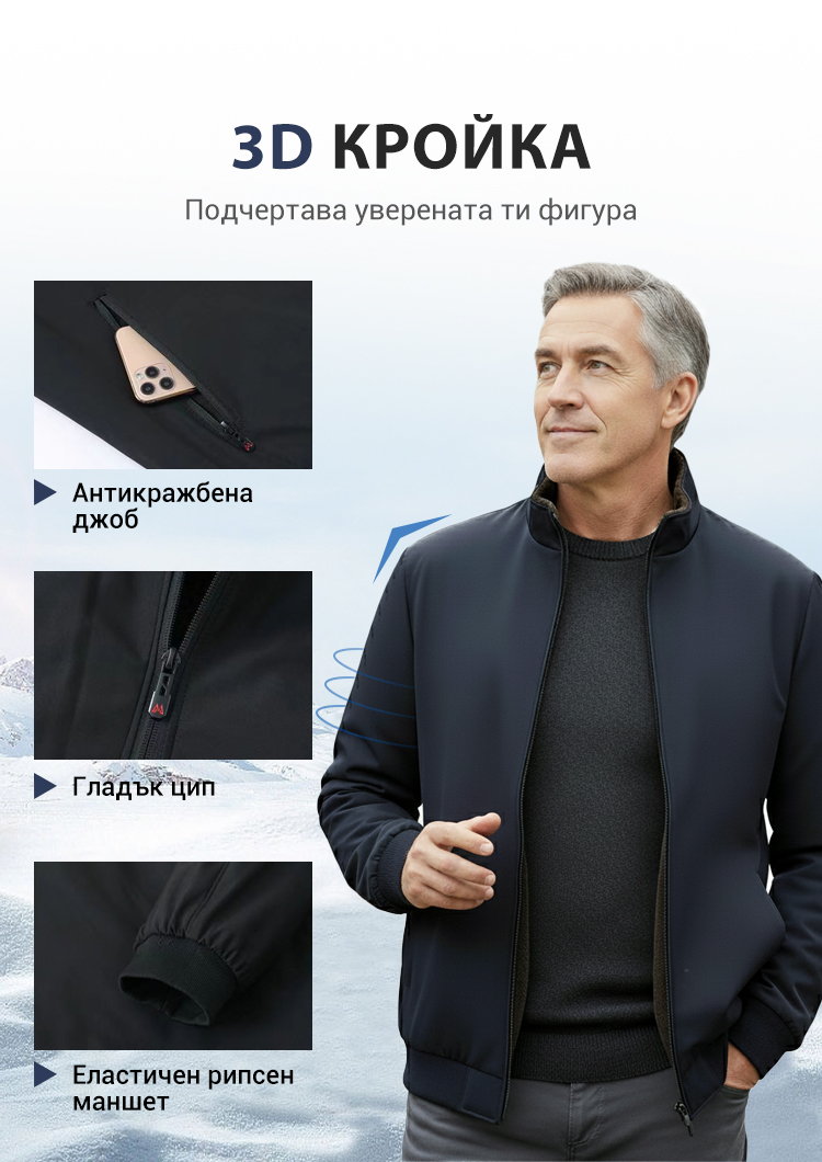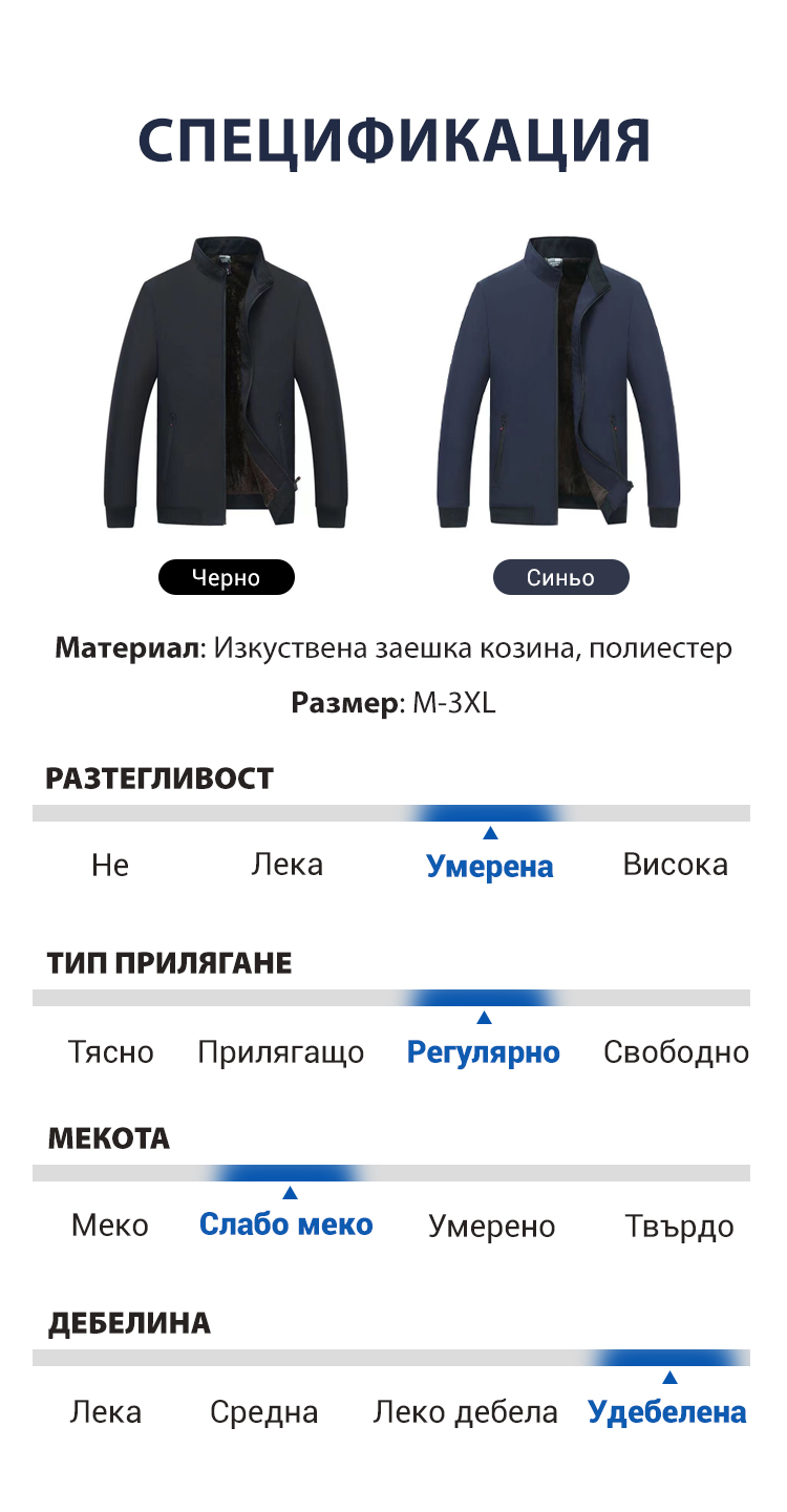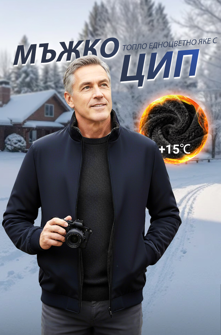Мъжка едноцветна топла яке с цип