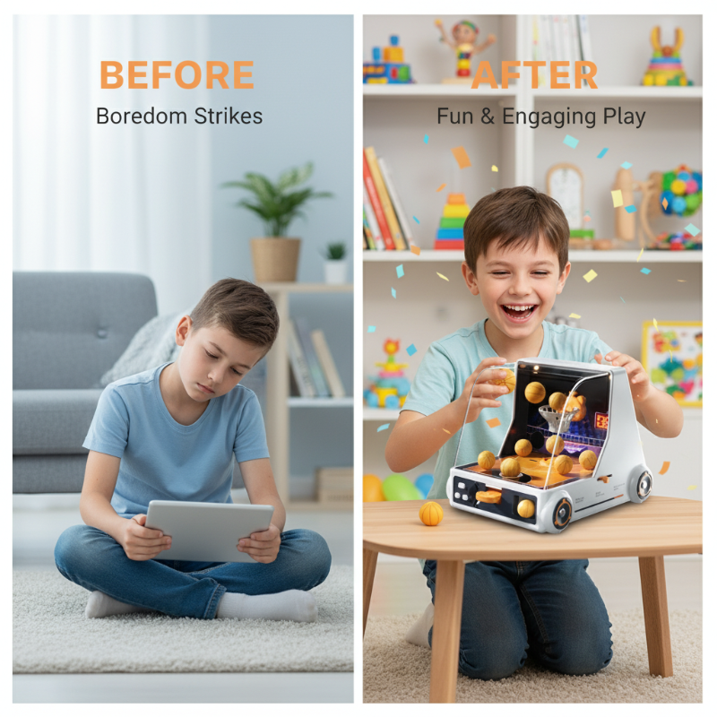 🎯 ДИНАМИЧНИ СВЕТЛИНИ И ЗВУЦИ - Потопете се в играта с вълнуващи светлинни ефекти и съпровождаща музика. Мотивиращи звукови ефекти отпразнуват всеки успешен удар, създавайки забавна аркадна атмосфера, която държи младите играчи ангажирани и развълнувани.