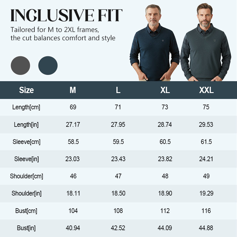 INCLUSIVE FIT- Създаден за тела от размер M до 2XL, кройката съчетава комфорт и стил. Тъмносивото излъчва модерен минимализъм, а тъмносиньото придава вечен чар. Комбинирайте с дънки или чино панталони за лесно преминаване от ден към нощ.