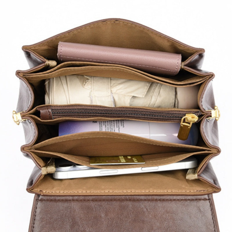 Многобройни организирани отделения: Практичният многопластов дизайн включва джобове с цип, просторно основно отделение и странични джобове за лесен достъп до ежедневните неща от първа необходимост.